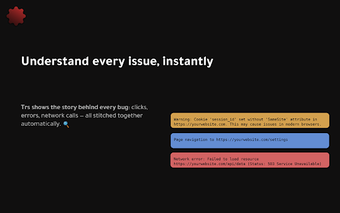 โดยการใช้ Trs นักพัฒนาสามารถจัดส่งซอฟต์แวร์ที่ดีกว่าได้อย่างมีประสิทธิภาพ เครื่องมือนี้จะจับภาพบันทึกที่เกี่ยวข้องทั้งหมดในลิงก์เดียว ทำให้ติดตามและแก้ไขข้อบกพร่องได้ง่ายโดยไม่ต้องยุ่งยากในการทำซ้ำปัญหา ด้วยอินเทอร์เฟซที่ใช้งานง่ายและฟีเจอร์การทำงานร่วมกัน Trs ทำให้กระบวนการแก้ไขข้อบกพร่องง่ายขึ้น ช่วยให้ทีมสามารถมุ่งเน้นไปที่การส่งมอบซอฟต์แวร์คุณภาพได้เร็วขึ้น